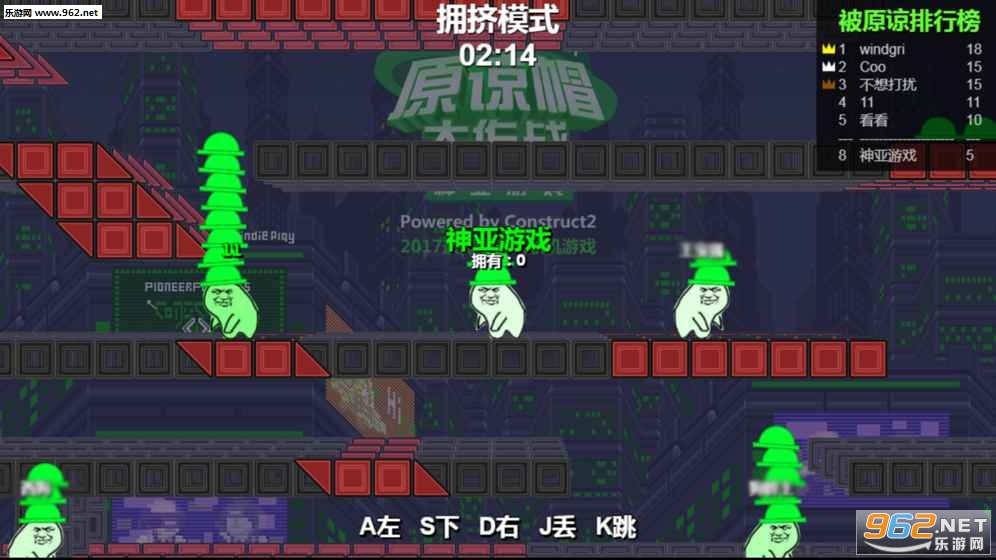 经过十几秒等待,就可以进入服务器和别人PK了,使用ASD来控制方向,J丢帽子,K则是跳。