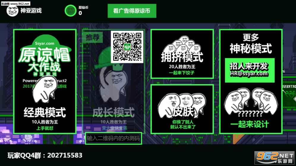 不过和页游不同,手游版本的《原谅帽大作战》还加入了内购,玩家可以通过付费获得新皮肤。另外游戏还加入了经典模式、成长模式以及拥挤模式,让老实人们能够享受多种戴绿帽的方式。