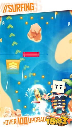 第四种冲浪运动就有点难了,主要是在冲浪过程中,我们需要通过左右滑动屏幕来控制主角反方向移动,没错,就是反方向,在遇到一些危险障碍或者连续转弯的时候,就很考验玩家们的应变能力。