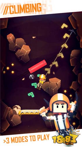 第二种是攀爬运动,直接向上滑动手指,主角就会向上攀爬,当然我们也可以通过滑动角度的不同来躲避各种障碍,这项运动难度并不大。