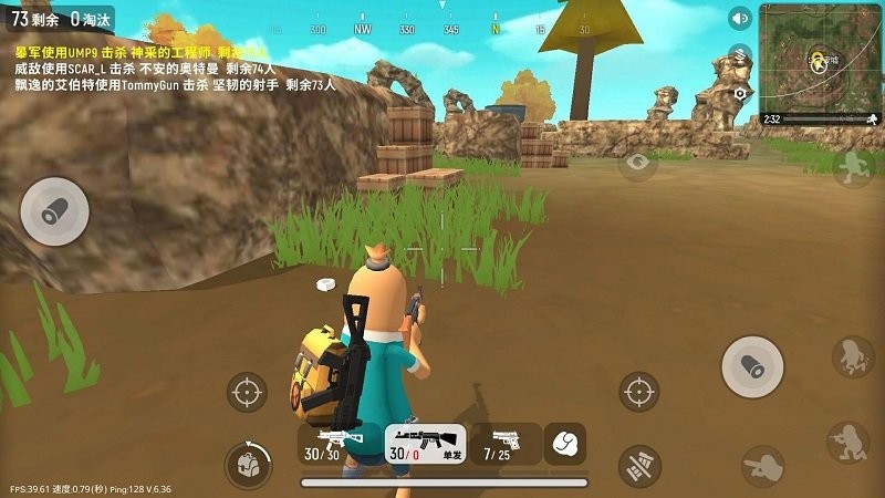 2、躲避毒圈和玩家的攻击,随机缩圈和随机轰炸;