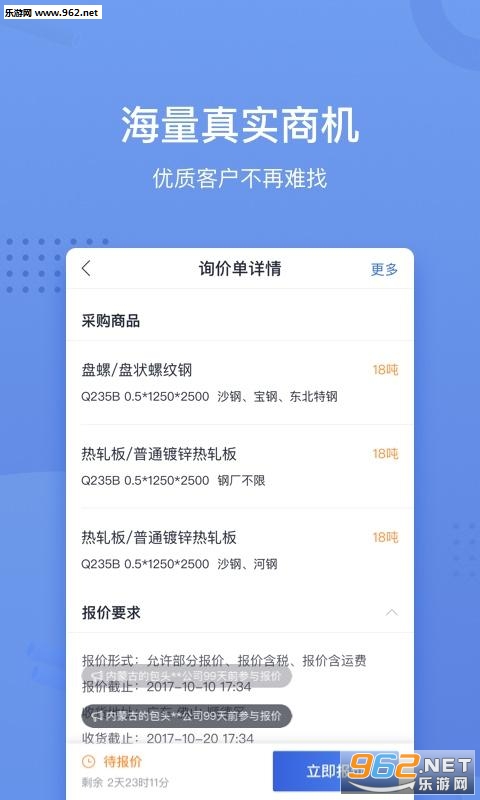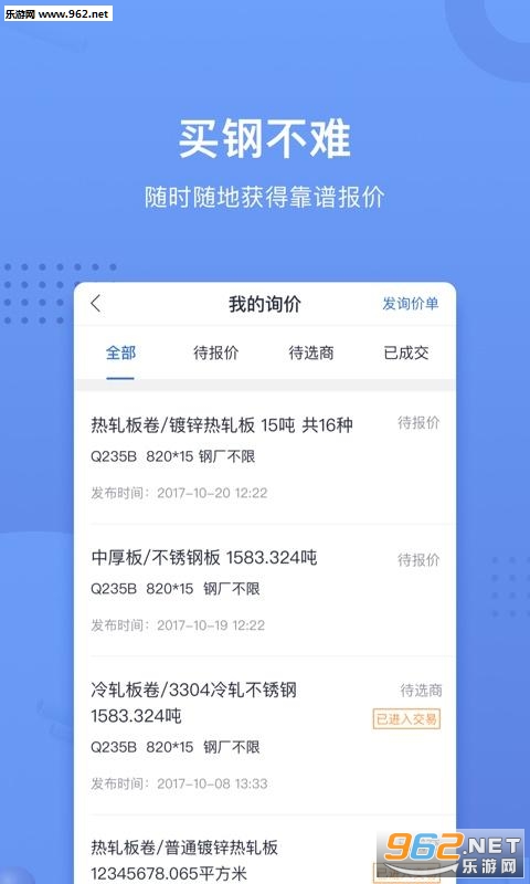 2.聚合钢铁求购商机:全国海量终端询价,商机一步触达;