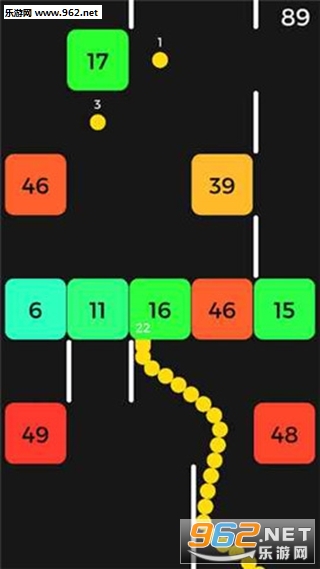 滑动手指引导一条由球组成的蛇,并将砖块打破。