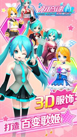 《初音速》特色的百变换装系统,由于拥有C社正版授权,装束和饰品设计华丽,细节精良,而且种类繁多。有王子风格的帅气主题,软萌可爱的喵咪主题,繁复精致的传统和服,冰冷高贵的雪女造型。玩家们可以打造不同的电子歌姬。