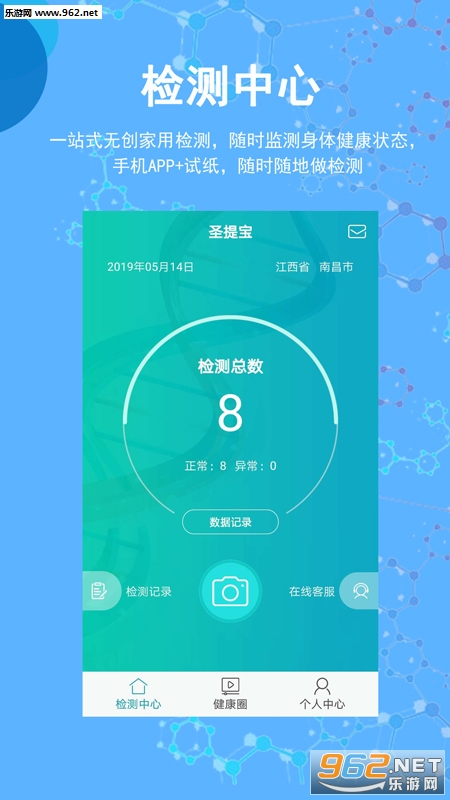 圣提宝,集“检测中心、健康咨询、家庭成员、健康圈、商城”五大特色服务于一体,为用户提供一站式无创家用检测及健康咨询管理服务。