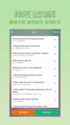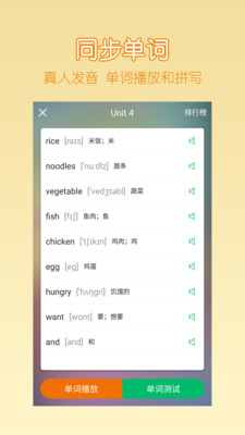 3、背诵单词:课文同步单词,真人发音,支持单词跟读、测试和听写。