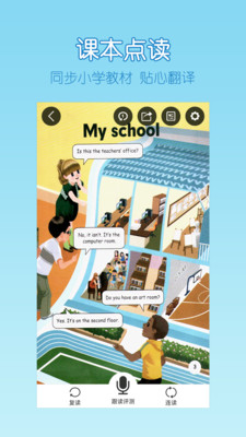 1、课本点读:同步教材、纯正发音、贴心翻译,可点读、连读、复读。