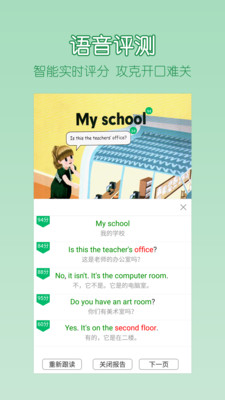 2、语音评测:课文跟读,实时智能评分纠正发音,可大幅提升孩子口语水平。