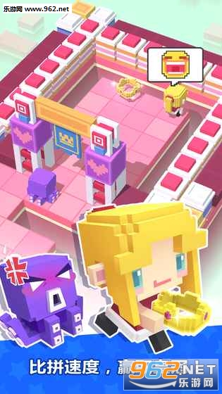 比赛开始之后敌我双方会一同安排在一个地点出场,然后我们就可以通过上下左右滑动来控制人物移动,我们的目的是争取第一个抵达前方的终点,整个赛道并非整整齐齐地摆在你面前,而是由一个个方块组成,其中又包含了不少陷阱机关,而且在路线设计上也会给玩家带来一些挑战性,你需要眼观六路选择最佳线路前进。