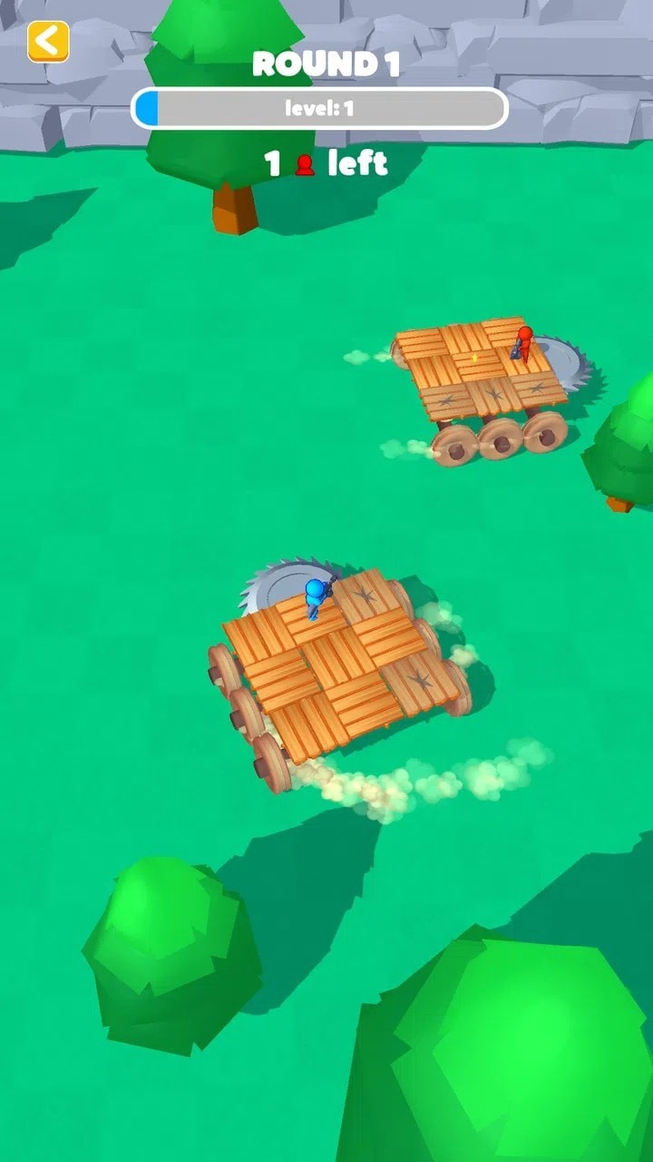 只有收集更多的木头才能建造出更大的木筏,同时还要射击对手的木筏,并小心对手的攻击。