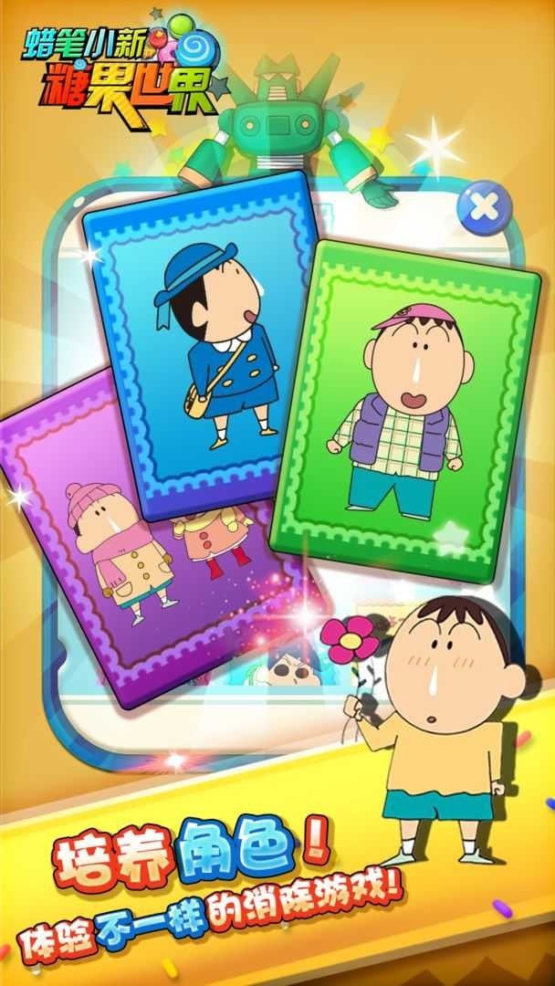 蜡笔小新糖果世界是一款采用卡通画风打造的消除闯关游戏,蜡笔小新糖果世界游戏有很多蜡笔小新动漫中的经典卡通角色,玩家可以自由选择角色开始消除闯关,每个卡通角色拥有的能力各不相同,玩家可以充分利用这些能力闯关,大大降低游戏的闯关难度,蜡笔小新糖果世界游戏为玩家提供超多道具,在这些道具的帮助下,玩家可以更加轻松地通过关卡的考验。