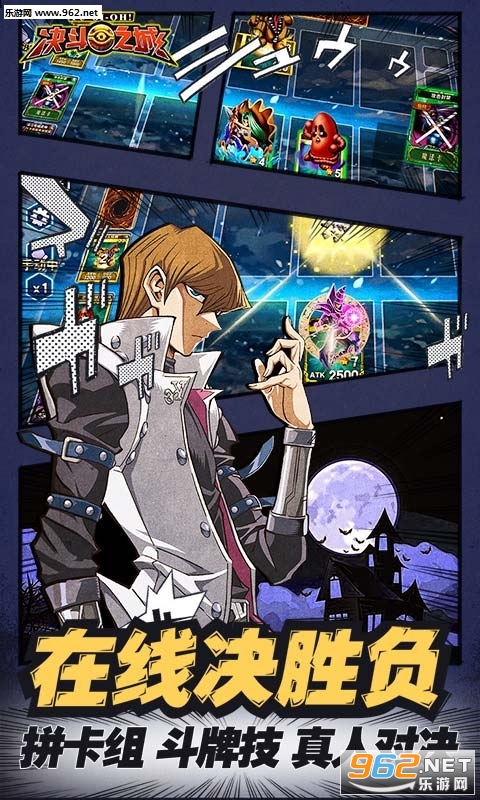 “游戏王”复刻改编,官方规则、原作角色、经典玩法,原汁原味为你呈现!青眼白龙、黑魔导、真红眼黑龙等上千种怪兽全方位还原,龙族套牌、昆虫卡组、死灵套牌等多种套牌任意打造,各个次元的决斗者齐聚决斗之城,同台竞技,在线对决,召唤怪兽,完成布局,使用魔法和陷阱绝地逆袭,让融合怪兽向对手发起致命一击。拼卡组,斗牌技,只有一个人能够获得最终的胜利!