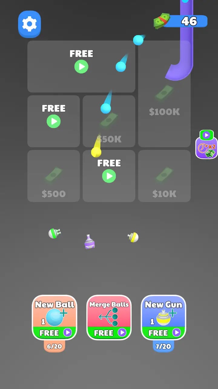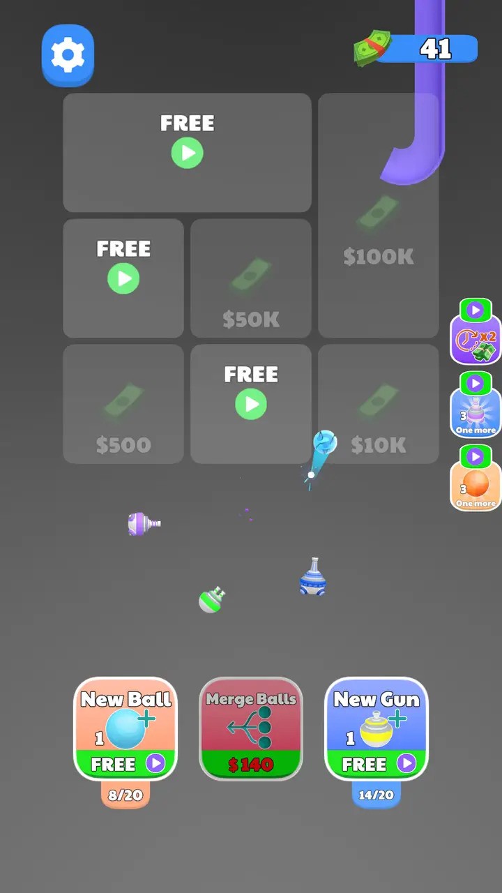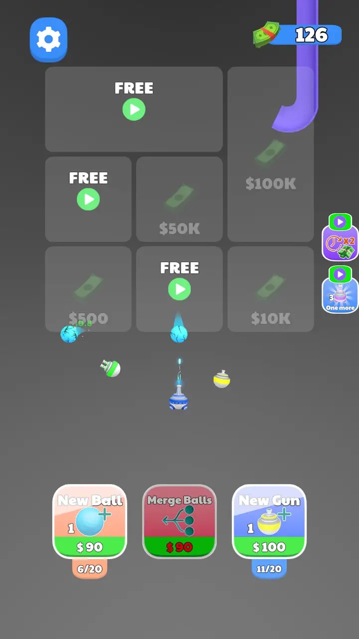 2.合并你的枪以获得更好的枪,合并球以获得每球更多的钱;