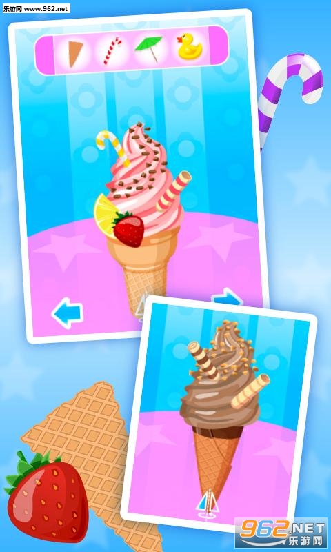 这是一款模拟经营游戏,玩家在游戏中将会扮演一家冰淇淋店的店长。玩家可以在游戏中制作出胡万众不同的冰淇淋,而除了销售和制作冰淇淋之外,还要负责店铺的装潢等工作,随后利用赚取的金币购买新的道具。