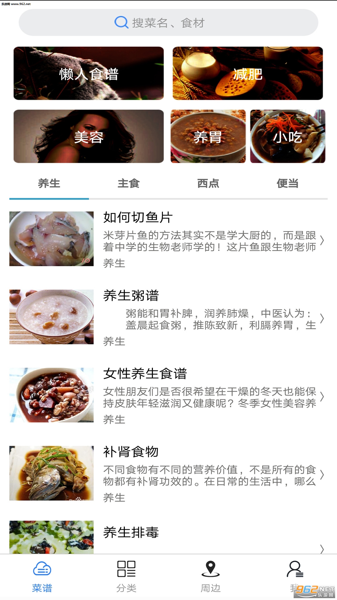 周边食谱app是一款专注于美食的食谱软件这里为用户提供了许多种美食的做法,以及各种儿童营养餐、养生美食等做法,同时在这里你还能够了解到更多最新的美食做法,并且在这里用户还可以一键搜索周边美食,快来下载吧!