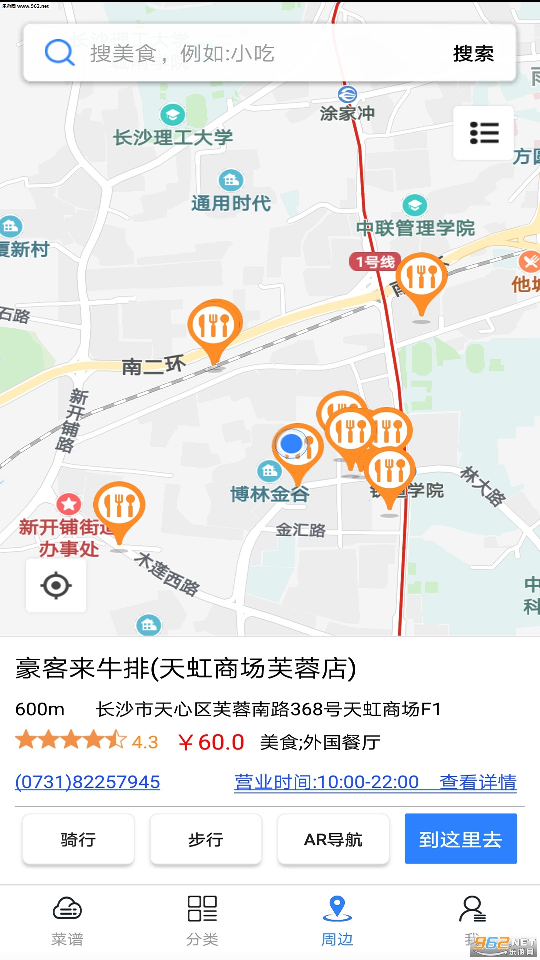 周边美食:找不到吃什么的时候查看一下周边,价位,位置一键导航去吃。