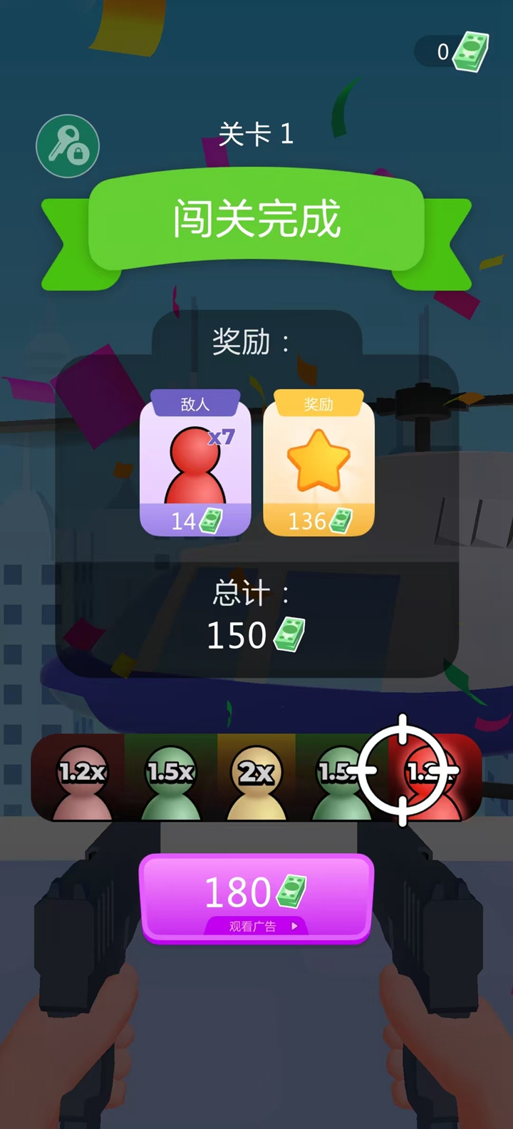 4、成功通关后,获得通关奖励,提供免广告版本武器幸存者,所以这里我们直接可以多倍获得。