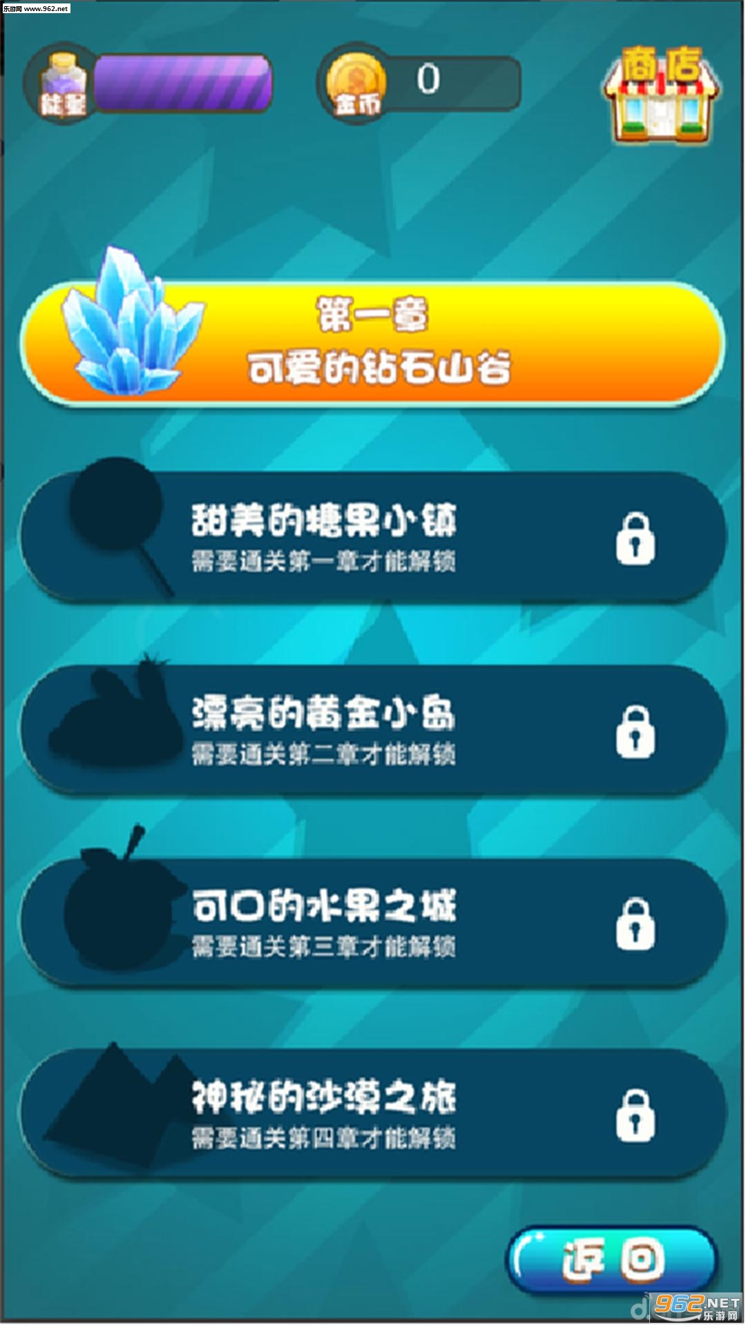 随后,就是进行关卡选择,如图关卡需要逐个的闯关进行解锁