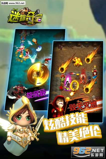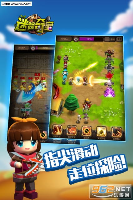 《迷踪夺宝》是一款Q版即时操作的动作卡牌游戏,可爱搞笑的画风与剧情。副本题材更是囊括世界各地的异域风情,配合着精巧诡秘的地下城机关,给自己的小队增加更艰巨的挑战。 本游戏不只适用于麒麟臂,手残也可放心食用。游戏以探险夺宝为主线,你可以享受极致走位的快感,收集Q趣呆萌的英雄,挑战迷雾重重的关卡,操作绚烂多姿的技能,战胜穷凶极恶的敌人。