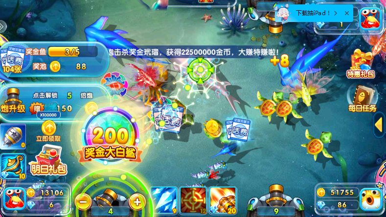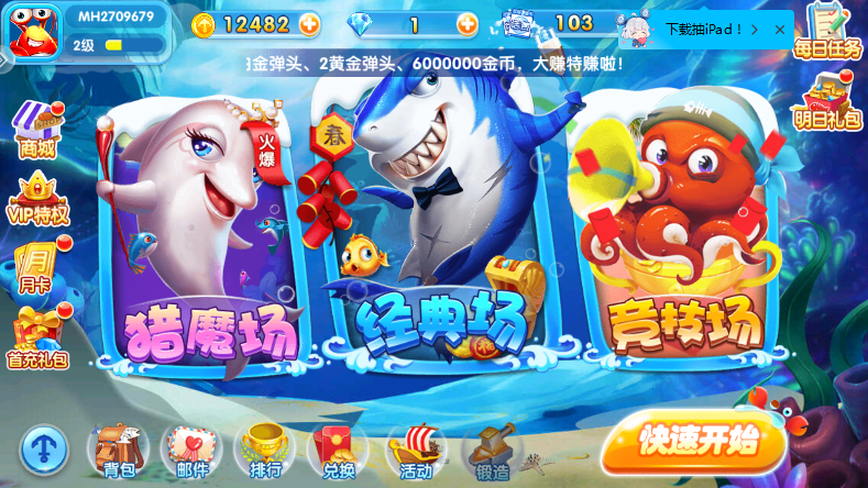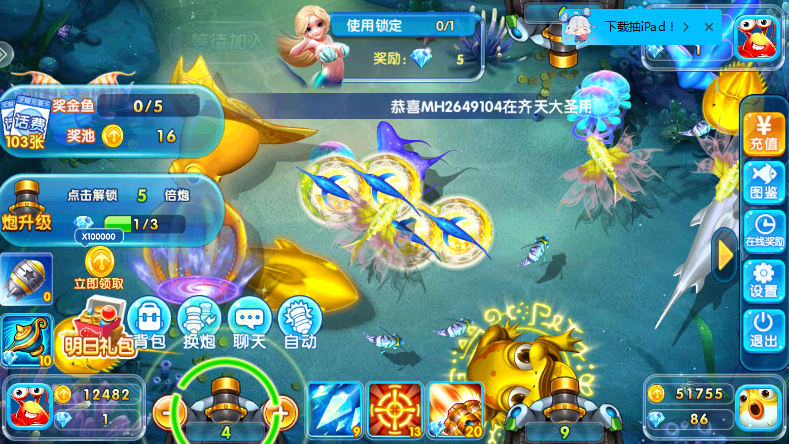 5、全新的捕鱼玩法,探索更新的世界,体验不同的游戏乐趣。