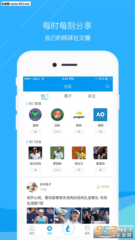 另外,乐网网球还有最精彩、最丰富的互动社区,与广大球友一起谈比赛、说球星、聊八卦。