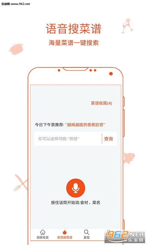 -语音搜菜谱:网罗线上海量菜谱,即说即搜, 原汁原味一步到位。