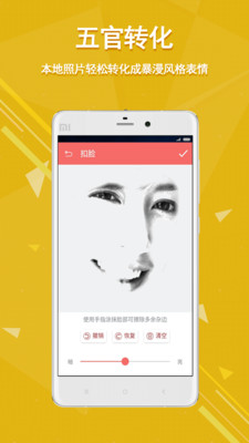 脸部扣除:可将本地照片中的五官给涂抹扣除,放上暴漫表情,搞笑袭来;