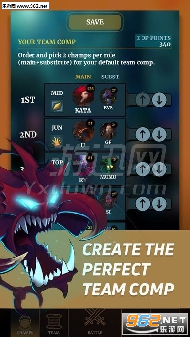 你可以自己组建属于自己的战队,从英雄搭配到玩法策略都由你一手掌控;