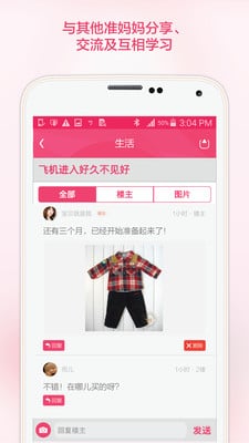 按不同兴趣分类的社区可让妈妈更方便的与其他准妈妈分享、交流及互相学习