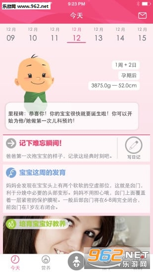 1、每日有超过6000条个性化消息,帮助你度过整个妊娠期以及宝宝早期的成长