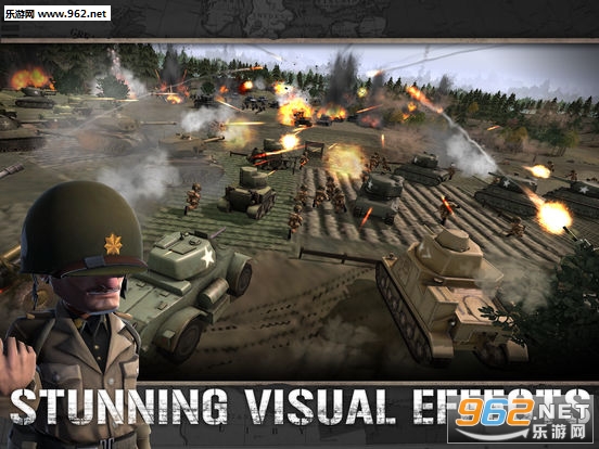 你将同时指挥数以百计的士兵,包括重型坦克、摩托化步兵和装甲车。成千上万的炮弹将在一片尘土中飞过战场,具有逼真的炮弹冲击特效,提供电影般的战斗场面。