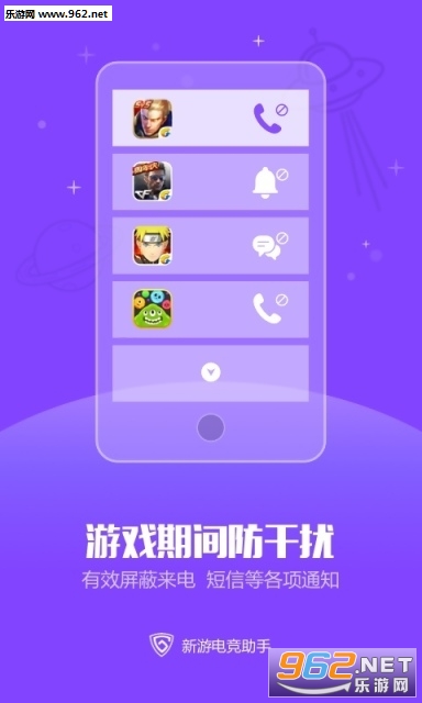 《新游电竞游戏助手》这是一款非常实用的游戏助手。玩游戏就怕来短信、来电话、来推送通知,怎么办?新游电竞游戏助手能够帮助实时屏蔽短信、电话、推送等,还有历史记录、查询功能,让你游戏、生活两不误。更有免费礼包、新游通知、社区畅聊等功能。喜欢游戏的用户不要错过哦!