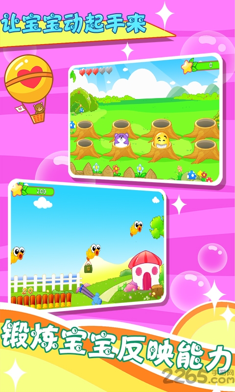 4、益智游戏:专为宝宝开发的益智类小游戏,培养孩子的反应能力及手的协调能力,主要有打地鼠、打鸭子、智力训练、左右脑开发、儿童拼图...等。