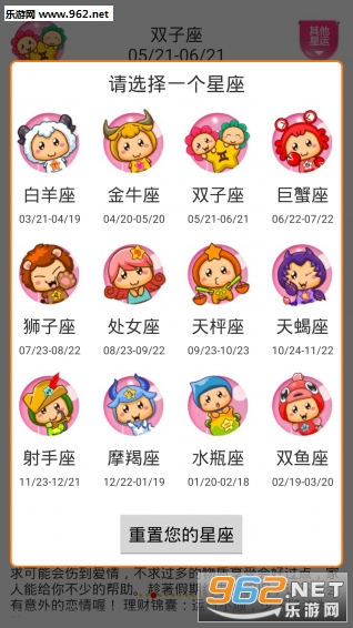 4、每日星座运势需要在联网情况下工作,但是却耗费很少的流量哦,请亲放心使用!