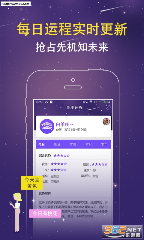,星座运程,通过星座来解析每个人的运势。随时查看运势运程,每日实时运势分析,全面预测一生大运,精准分析你的未来发展,让你把握大运之年,提升事业、财运,爱情、健康预防等运势。PS:有此神器在手,天下归你所有!