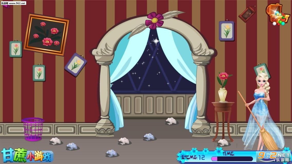 2、玩家在游戏中需要帮助艾莎打扫大大的城堡