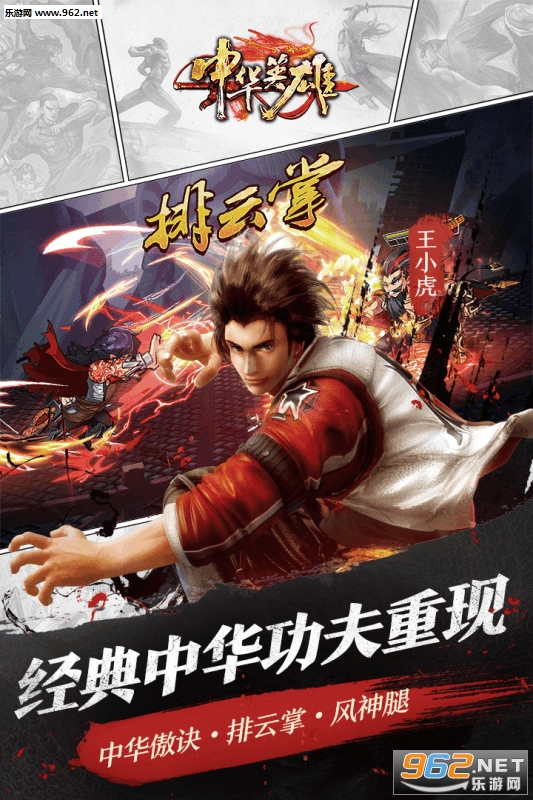 中华英雄手游是一款以还原中华功夫为精髓的战斗RPG手游,游戏中英雄间技能均基于漫画原著描写,中华傲决,绝情绝义剑法再现自由女神像下经典对决,此外还有三分归元气,如来神掌,风神腿,排云掌等等,各位港漫爱好者耳熟能详的经典招式都将在本游戏中一一还原,并且针对动作进行优化,强化一招一式的打击感,让玩家感受拳拳到肉的畅爽战斗体验!