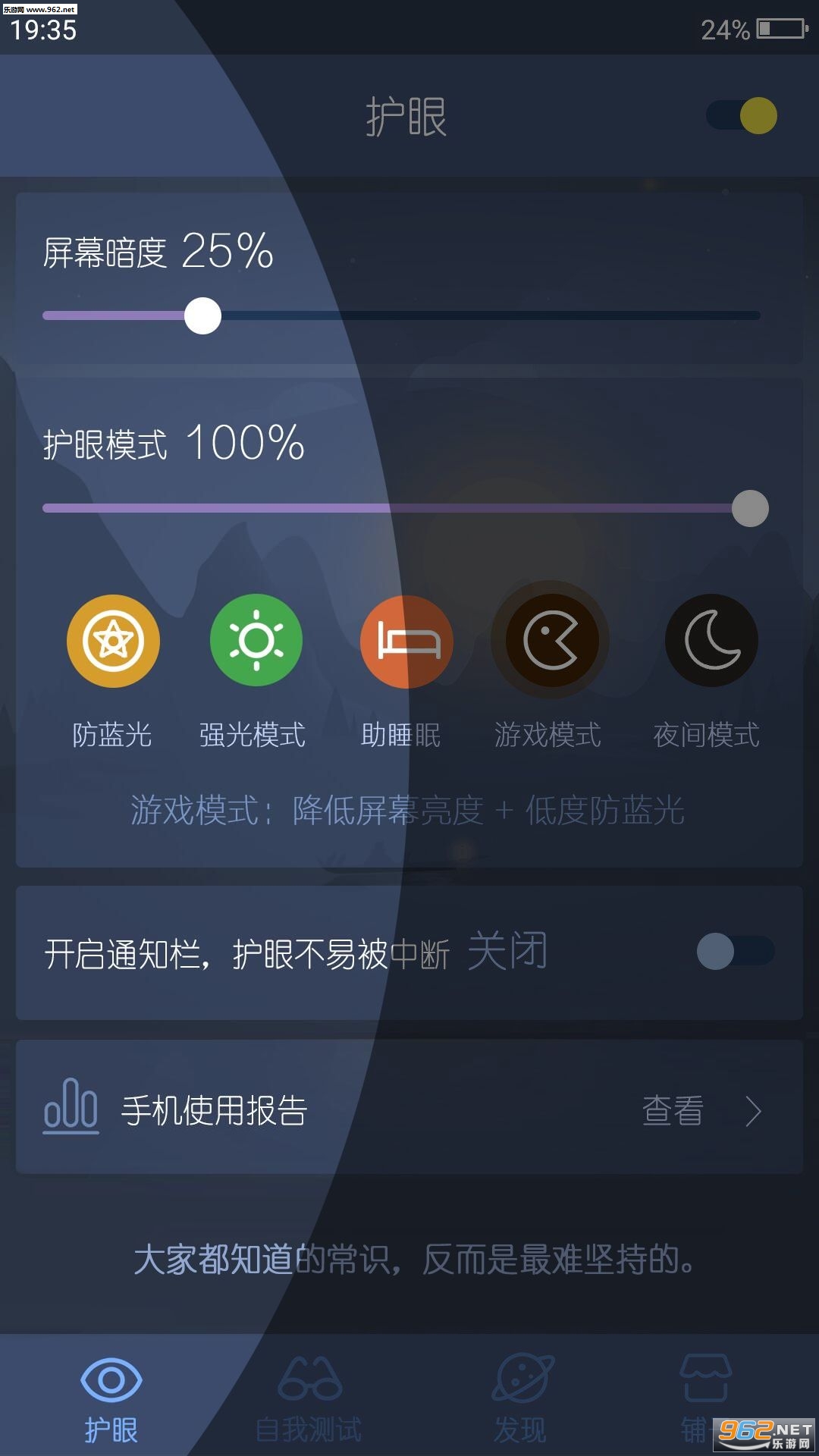 非常实用的一款手机软件,能够为你提供专业的护眼常识,丰富的护眼功能, 让你使用手机的同时也能保护自己的眼睛,对于日常玩手机而言非常方便!