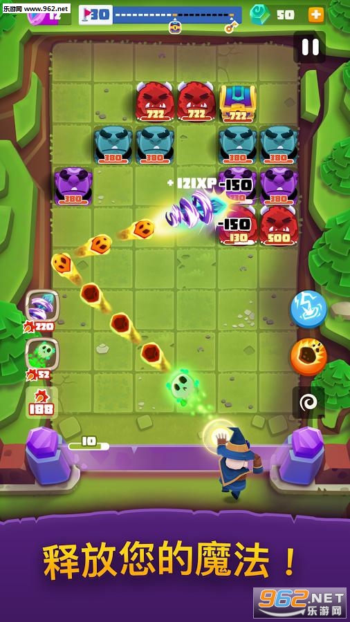 僵尸猎手手游是国外知名游戏工作室Gram Games Limited研发的一款弹球消除类打僵尸游戏,游戏的玩法非常轻松休闲,玩家只需要发射自己的魔法飞弹消灭不断逼近的尸群,保卫自己的防线即可。找准时机释放炫酷强力的全屏大招,能让大家更加顺利地通过关卡哦~