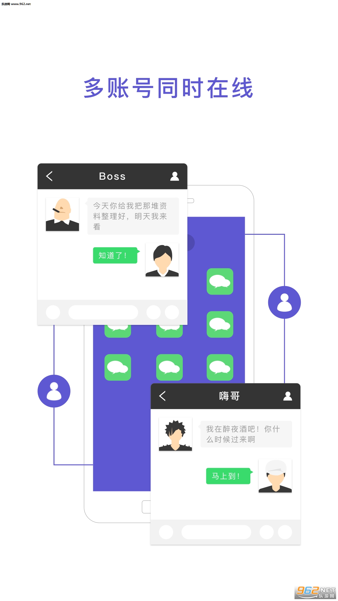 &8226; 多个账号同时在线,可多开N个,QQ,,游戏……手机里的一切软件,不错过任何一个账号消息!
