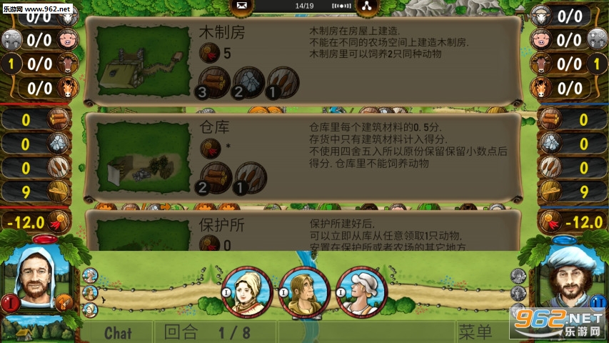 一款改编自经典同名桌游的策略经营类游戏,玩家将在游戏中扮演农场的主人与邻近的其他农场竞争。你需要掌握多方面的农业知识构筑围栏圈养牲畜,或是驻地耕耘,亦或是扩大你的家庭增加农场的劳动力,收支平衡是胜利的关键。
