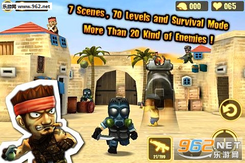 22种武器换子弹的时机掌握,适时切换长短枪,偶尔赏敌人一颗芭乐是闯关拿高分的必备技巧。