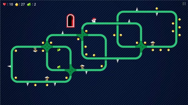 玩法多样的冒险闯关类游戏,去试图找到正确的路径并收集所有的黄金点数吧。