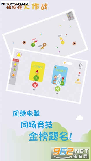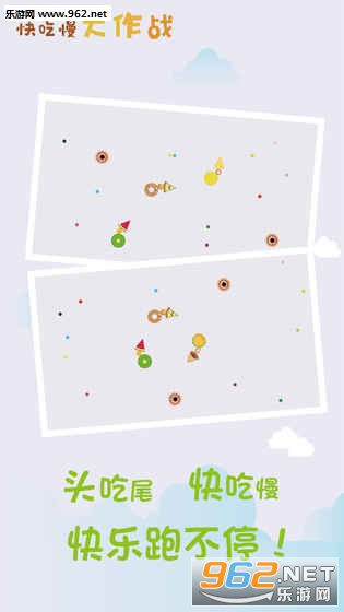 《快吃慢大作战安卓版》是一款慢点就要被吃掉的手游,有点像球球大作战,但内容却不同,游戏画风清新,有着全新的玩法,还有非常酷炫的特效,游戏中玩家通过不断的吃掉别人来壮大自己,游戏非常的好玩,快来下载吧!