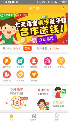 《量子蜂app》是一款能够赚钱赚流量的实用软件,用户只需要每日签到就会有用不完的流量赠送,和朋友分享你喜欢的文章朋友阅读之后你也是会有收益的哦!最重要的是这个版本的《量子蜂app》还新增了微商吸粉平台,成为了一款真正能够提供各种赚钱帮助的微商神器软件!