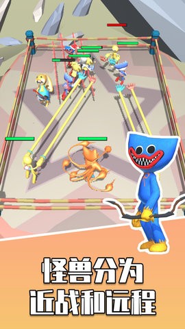 3、随着挑战的关卡越来越多,等待你挑战的怪兽也会越来越强。快来创造更多的怪兽进行合成,进化为终极蓝色怪兽,主宰战场。