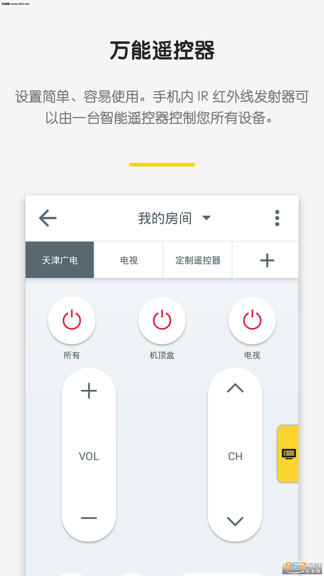 通过您智能手机上内置红外 IR 发射器,您可以可靠控制您的电视机、机顶盒、DVD 播放器、蓝牙光碟机、Roku、苹果电视、音响系统和像空调以及加热器这样的家用电器。