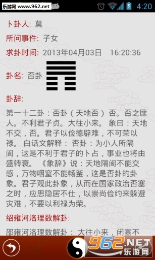 现在这些都不用啦,因为有了算卦大师,通过文王六十四卦占卜,为您测算运势、升学、事业、财运、交易、经商、出行、恋爱、健康、子女等等。只要手指轻轻一点或者摇动手机,便可卜卦天下事。人品爆发,遇到百年不遇的好卦时,还可以收藏在本地时时查阅,或者分享到,向朋友们show一show。卜卦娱乐两不误~