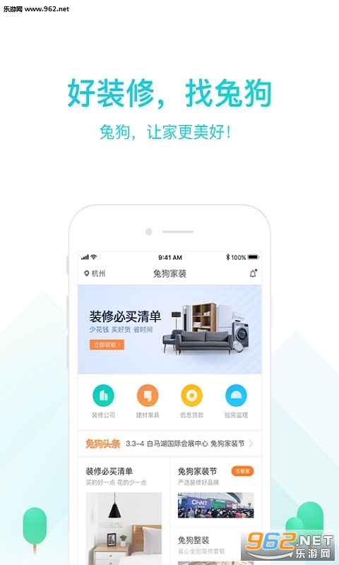 《兔狗家装最新版》是一款装修设计平台软件,在这款软件上用户可以很方便的找到自己想要的风格,大牌建材家具,以更优惠的价格购买,众多业主口碑推荐,更加放心省心。