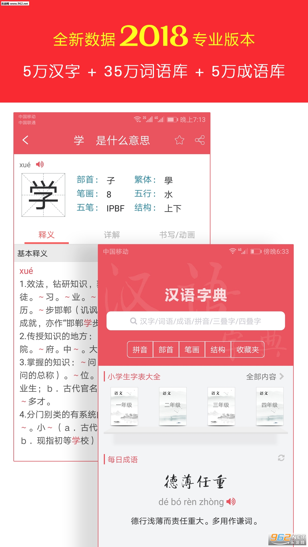 《汉语字典专业版》 是一款非常好用的学习辅助软件,将我们平常用的汉语字典转化为电子版,可以随身携带,随时随地都可以用,非常的方便。